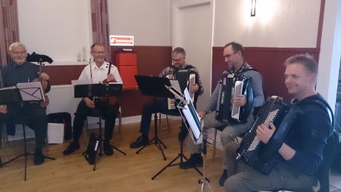 12. februar spillede Ribe Spillemandslaug op til dans på Eventyrgården. Vi startede med Stegt flæsk og derefter var der dans.